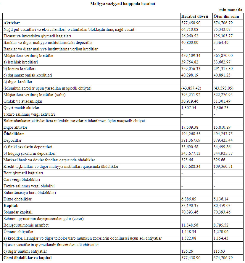 Ötən ilin sonu ilə müqayisədə ilk rübdə AFB Bankda depozitlər 1 milyon 942 min manat artaraq 3 milyon ,367 min manata çatıb.