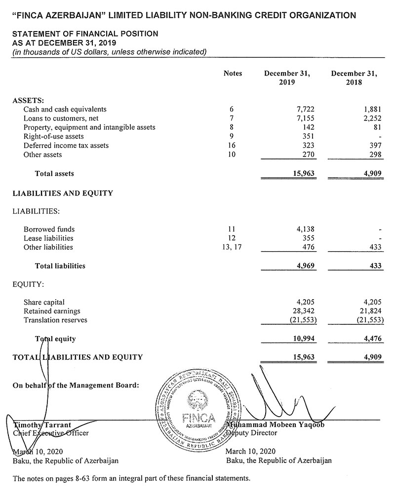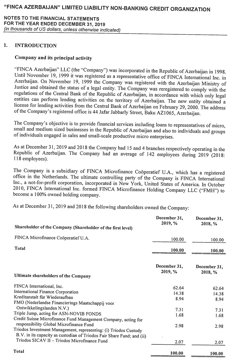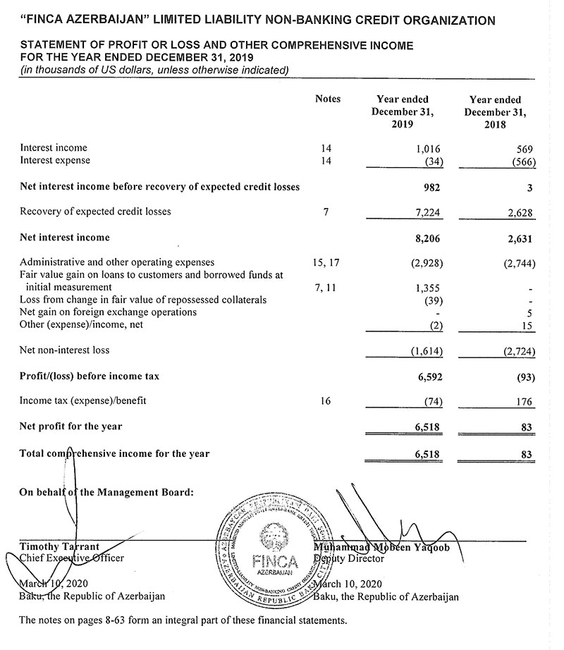 2019-cu ildə bir sıra rayonda filialını açaraq 16-ya çatdıran “FİNCA Azerbaijan” Qeyri-Bank Kredit Təşkilatı ötən ili 6 milyon 518 min dollar (11 milyon 81 min manat) xalis mənfəət ilə başa vurub. 2018-ci illə müqayisədə təşkilatın xalis mənfəəti 78 dəfə artıb. “FİNCA Azerbaijan” 2018-ci ili 83 min dollar (141,1 min manat) xalis mənfəət ilə bağlamışdı. Mənfəət ehtimal olunan kredit itkiləri üçün yaradılan ehtiyatın bir hissəsinin azad olmasından qaynaqlanıb.