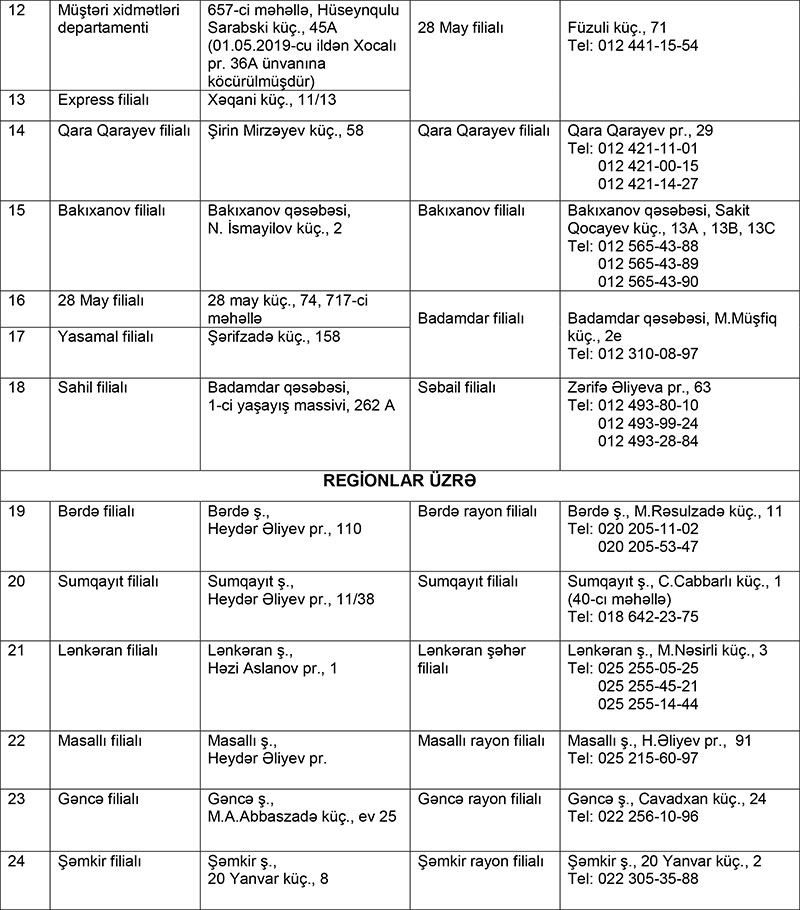 Ata Bank və Amrah Bankın əmanətçilərinə kompensasiyalar bu filiallarda ödəniləcək - SİYAHI