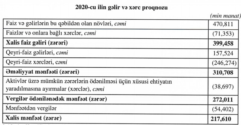 “Kapital Bank” ASC 2020-ci il üzrə gəlir və xərc proqnozunu açıqlayıb.