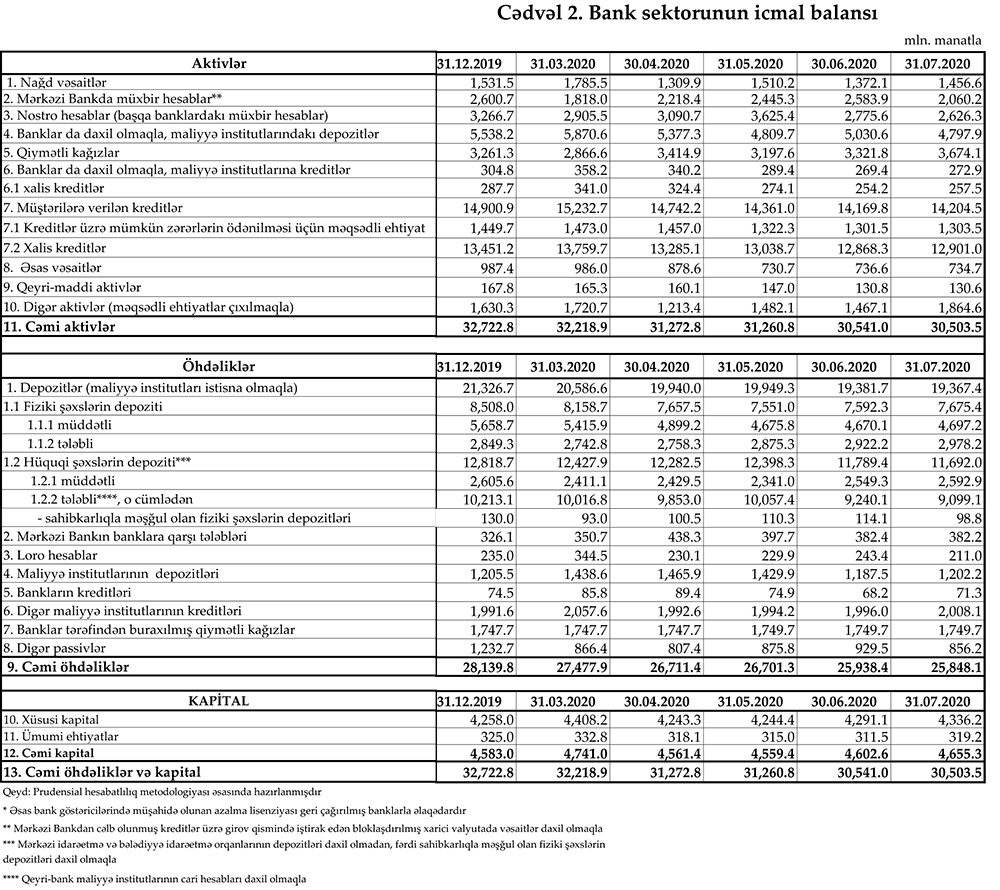 Tələbli depozitlər 7 ay ərzində isə 1 milyard 114 milyon manat azalıb.