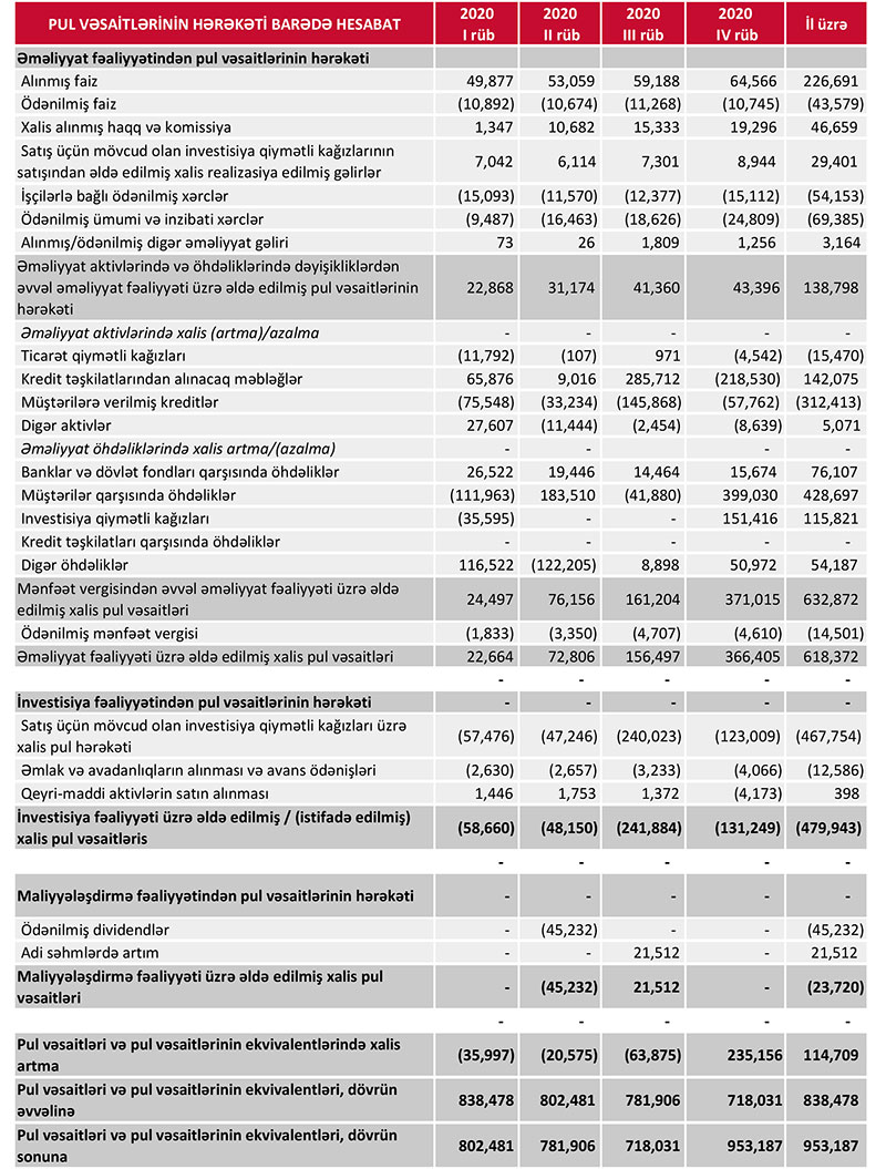 2020-ci il üçün maliyyə hesabatları