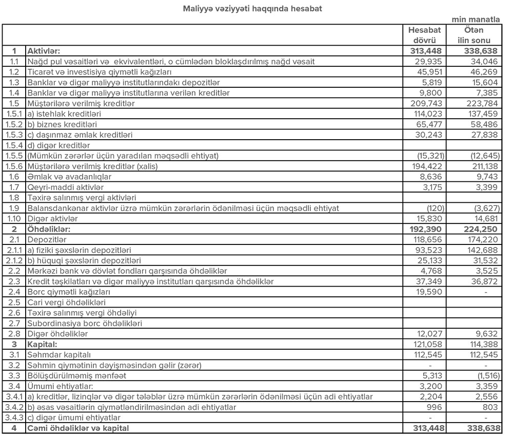 Ötən il “Expressbank”ın əməliyyat gəlirləri 33 min manat, əməliyyat xərcləri isə 7 milyon 140 min manat azalıb.