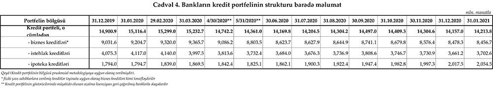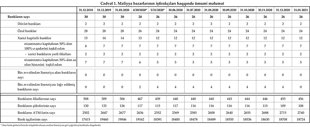 31 yanvar 2021-ci il tarixinə olan bank sektorunun əsas göstəriciləri açıqlanıb.