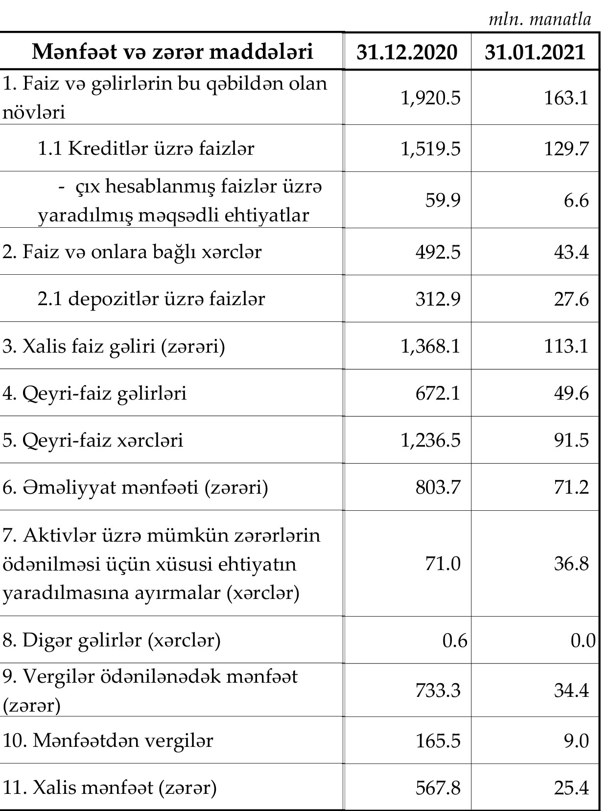 Belə ki, Azərbaycanın bank sektoru 2020-ci ilin Yanvar ayının 49,4 milyon manat xalis mənfəət ilə başa vurmuşdu.