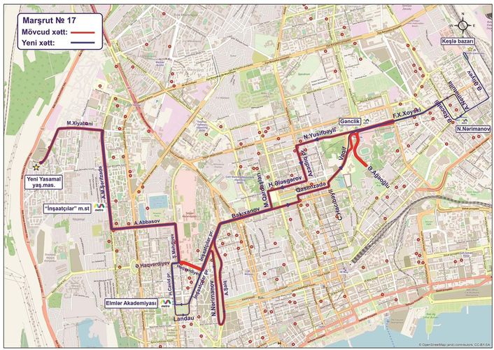 17 nömrəli xətt üzrə dəyişiklik də çoxsaylı vətəndaş müraciətləri nəzərə alınmaqla edilib. Bununla da Yeni Yasamal yaşayış massivi, metronun “İnşaatçılar” (Abbas Mirzə Şərifzadə küçəsi) və “Elmlər Akademiyası” stansiyası ətrafında yaşayan sakinlərin birbaşa marşrut xətti ilə metronun “Nəriman Nərimanov” stansiyası və ətraf ərazilərə gediş-gəlişi təmin ediləcək.