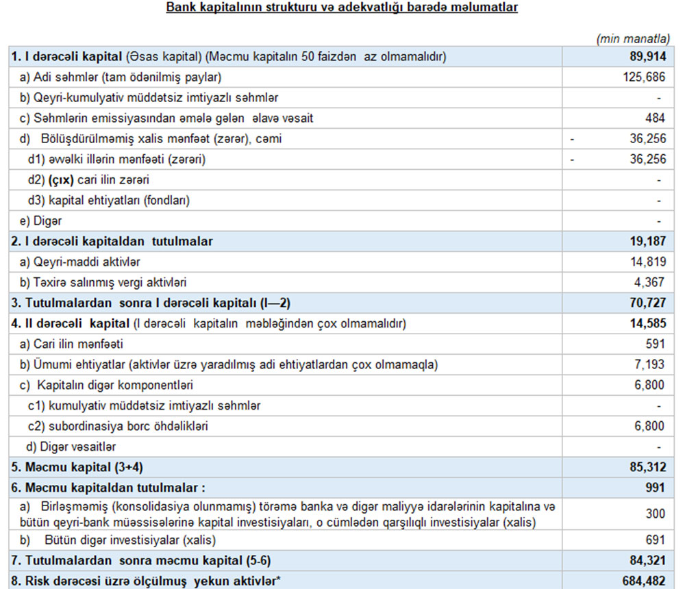 31 Mart 2021-ci il tarixində Unibank 84 milyon 321 min manat məcmu kapitala malik olub.