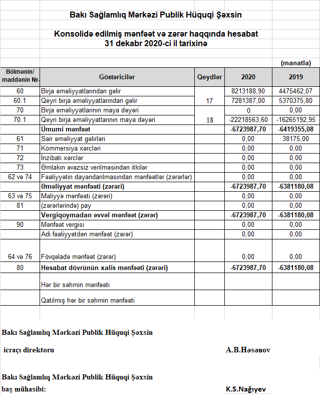 Mərkəz 2019-cu ili 6 milyon 381 min manat, 2018-ci ili 6 milyon 578 min manat, 2017-ci ili 4 milyon 834 min manat xalis zərər ilə bağlamışdı. Beləliklə, ötən il Mərkəzin zərəri artıb.