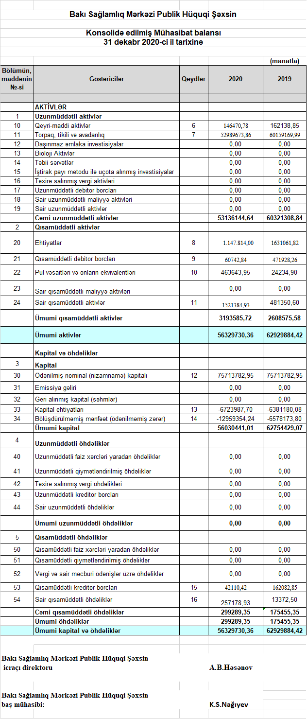 Bakı Sağlamlıq Mərkəzi Publik Hüquqi Şəxsi 2020-ci ili 6 milyon 724 min manat xalis zərər ilə başa vurub.