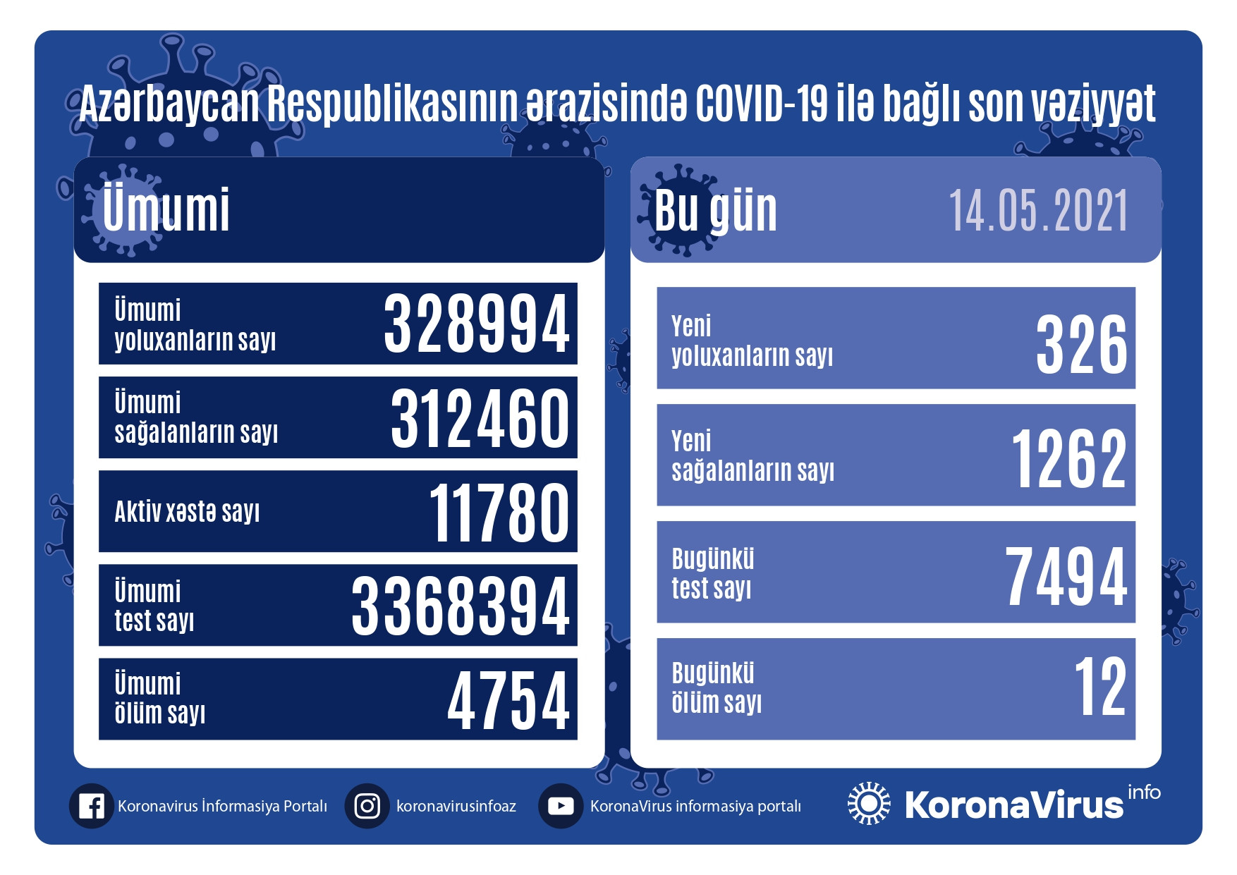 Azərbaycan Respublikasında koronavirus (COVID-19) infeksiyasına 326 yeni yoluxma faktı qeydə alınıb, 1 262 nəfər müalicə olunaraq sağalıb.