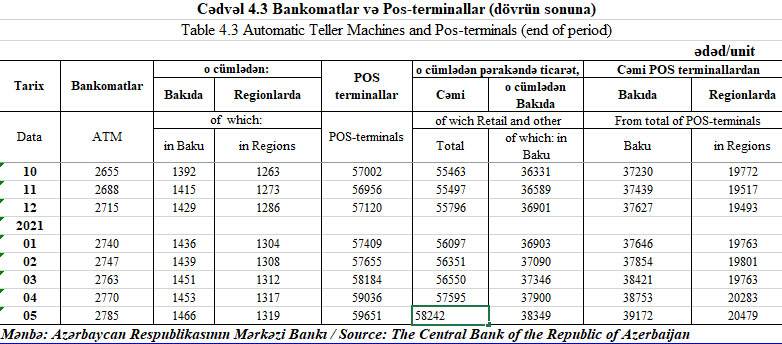 2021-ci ilin May ayında Azərbaycanda POS-terminalların sayı 615 ədəd artaraq 59 min 651 ədədə çatıb.
