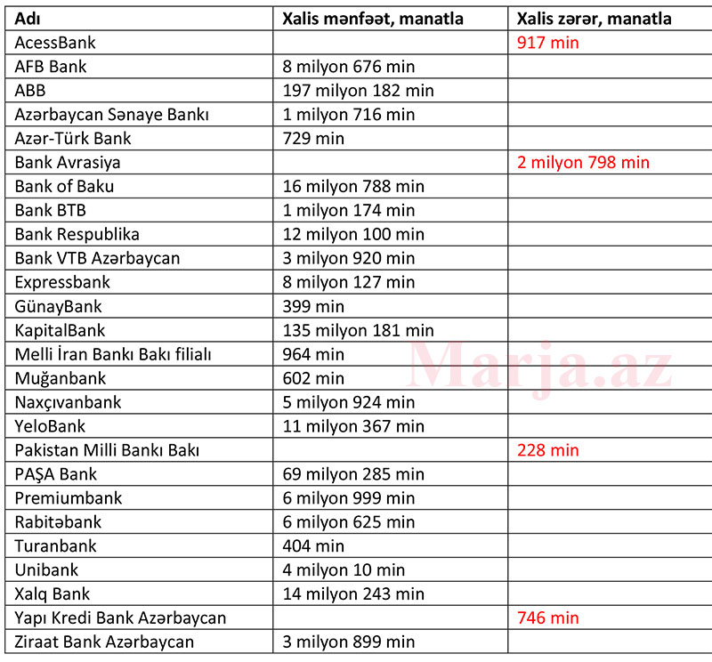 22 bank mənfəət, 4 bank zərər açıqladı - SİYAHI, YENİLƏNİB