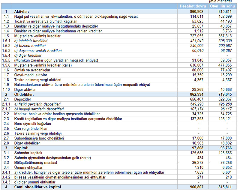 BANK BÖYÜYÜB, AKTİVLƏRİ 1 MİLYARD MANATA YAXINLAŞIB