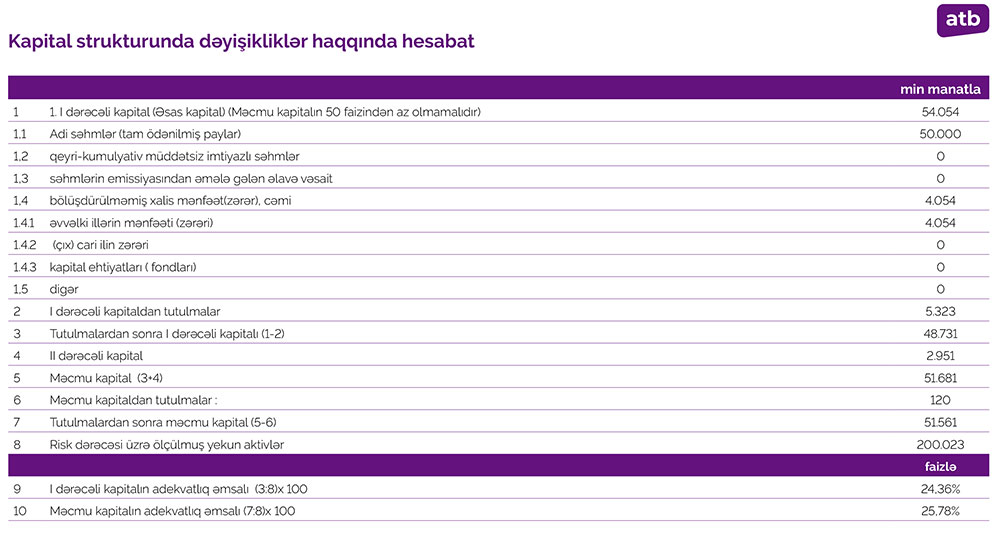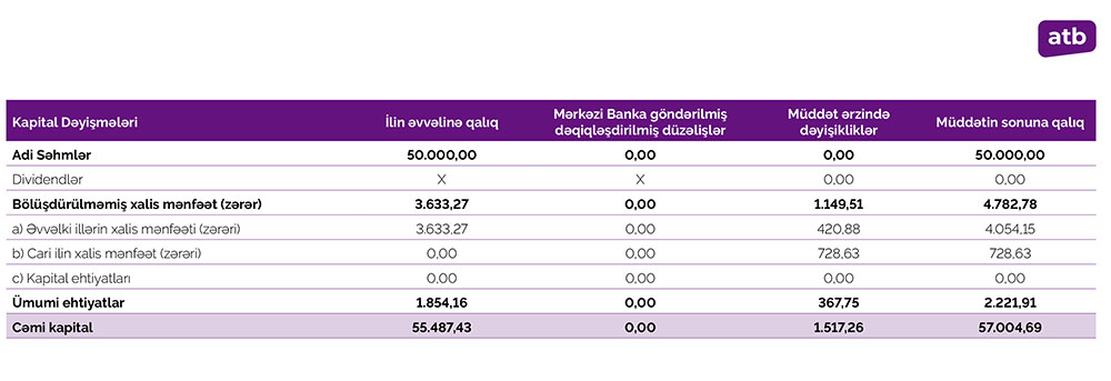 30 Sentyabr 2021-ci il tarixində Azər Türk Bank 51 milyon 561 min manat məcmu kapitala malik olub. 2020-ci ilin sonunda Azər Türk Bankın məcmu kapitalı 50 milyon 38 min manat təşkil etmişdi.