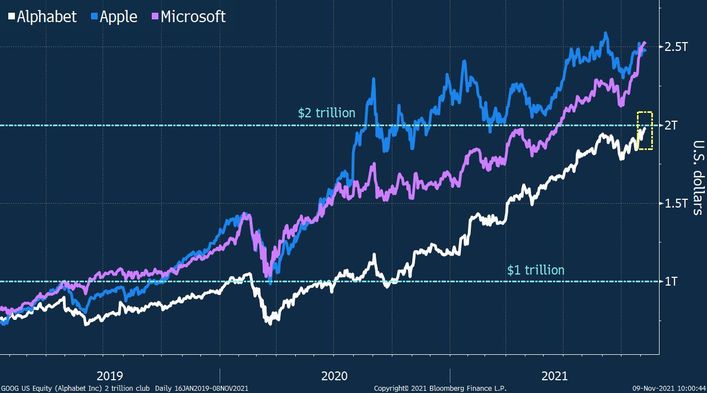 Marja xəbər verir ki, Alphabet-in bazar dəyərinin 2 trilyon dolları keçməsilə şirkət Apple və Microsoftun olduğu 2 trilyon dollar klubunda yerini alıb. Bu texnologiya şirkətləri ilə bərabər Səudiyyə Ərəbistanının Aramco şirkətinin də dəyəri də 2 trilyon dolları aşır.