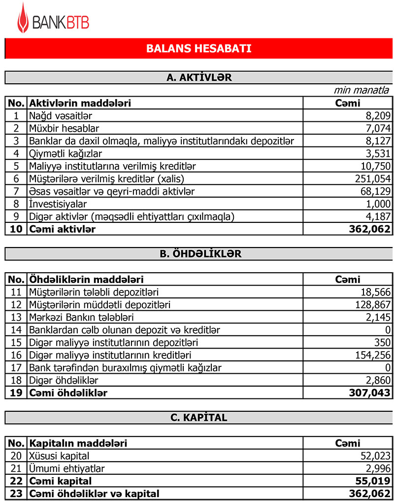 Bank BTB 2021-ci ili mənfəətlə başa vurub - BANK MALİYYƏ VƏZİYYƏTİNİ AÇIQLADI