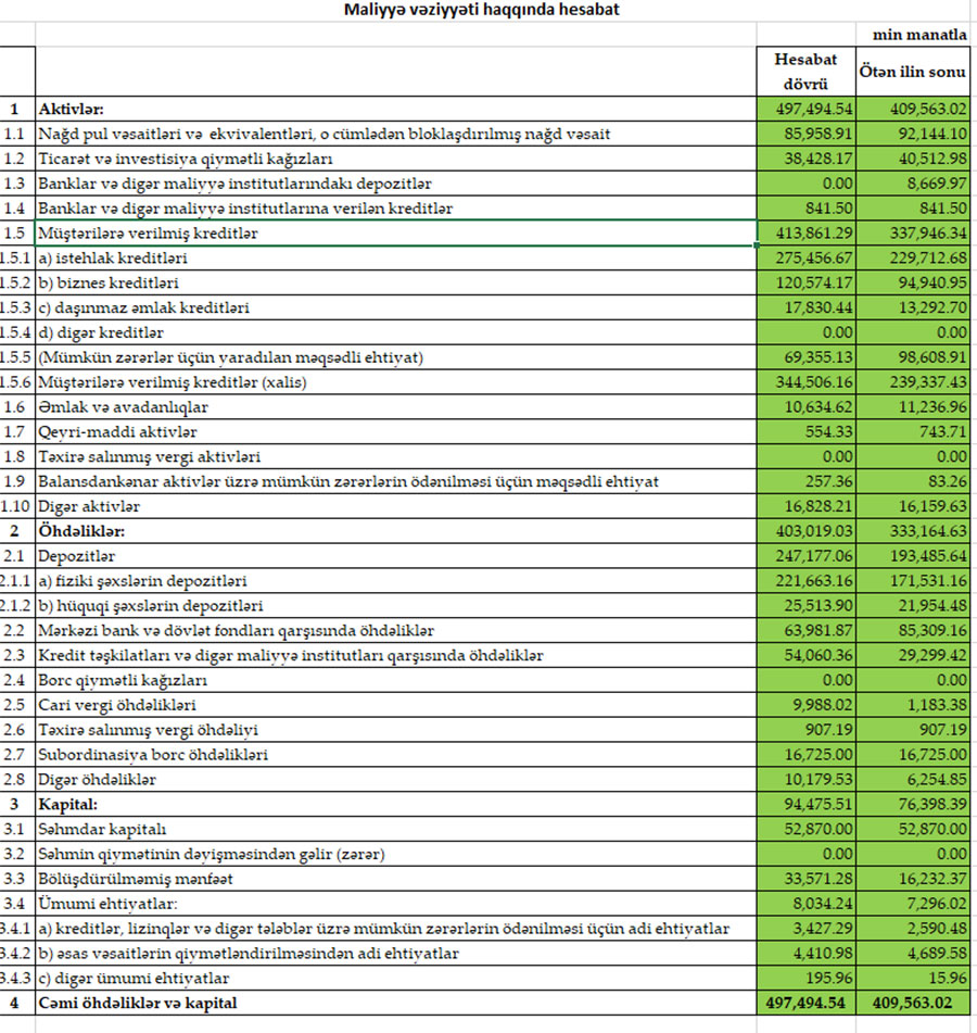 AKTİVLƏRİ 500 MİLYON MANATA YAXINLAŞIB