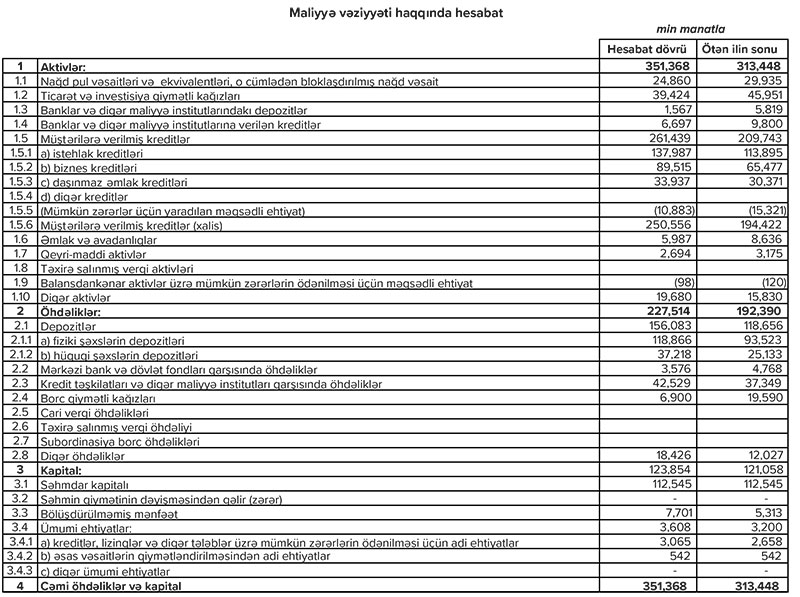 "Expressbank" ASC 2021-ci il üzrə maliyyə göstəricilərini açıqlayıb.
