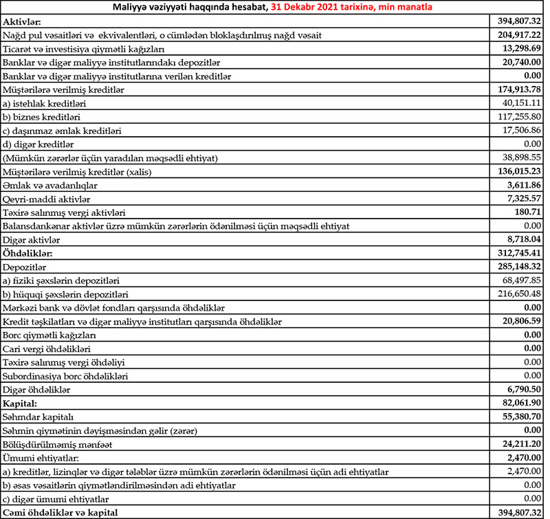 “Yapı Kredi Bank Azərbaycan” 2021-ci ili 6 milyon manata yaxın əməliyyat mənfəətilə başa vurub.“Yapı Kredi Bank Azərbaycan” QSC 2021-ci il üzrə maliyyə göstəricilərini açıqlayıb.