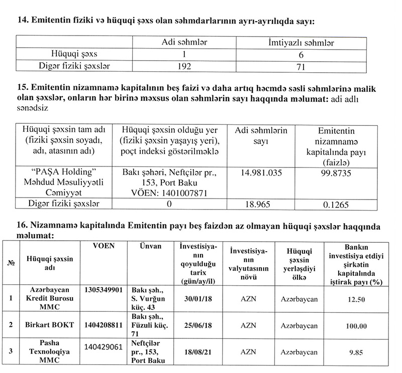 Qeyd edək ki, "Kapital Bank" və "PAŞA Texnologiya" "PAŞA Holdinq" şirkətlər qrupuna daxildirlər.