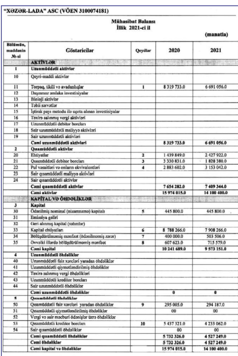 Marja.az xəbər verir ki, ötən il şirkətin cəmi əməliyyat gəlirləri 27 milyon 946 min manat, cəmi əməliyyat xərcləri isə 27 milyon 172 min manat təşkil edib. Gəlirlər xərcləri üstələdiyindən şirkətin 773 min manat əməliyyat mənfəəti yaranıb. "Xəzər Lada" məzənnə fərqinə görə 144 min manat zərər edib və 126 min manat mənfəət vergisi ödəyib.