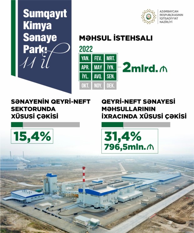 İndiyədək Sumqayıt Kimya Sənaye Parkı-nın rezidentləri tərəfindən 5,3 milyard manat investisiya yatırılıb və 6 000-dən çox insan daimi işlə təmin olunub.
