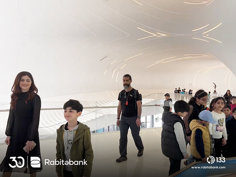 Rabitəbank əməkdaşı ilə birgə uşaqlar gəzinti zamanı Heydər Əliyev Mərkəzi ilə yaxından tanış olublar, daha sonra Mərkəzin daxilində yerləşən sərgini gəzib, Ümummilli Lider Heydər Əliyevin həyatı haqqında maraqlı faktları öyrəniblər.