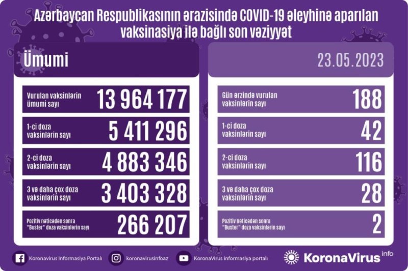 Azərbaycanda son sutkada koronavirus (COVID-19) əleyhinə 188 vaksin vurulub.