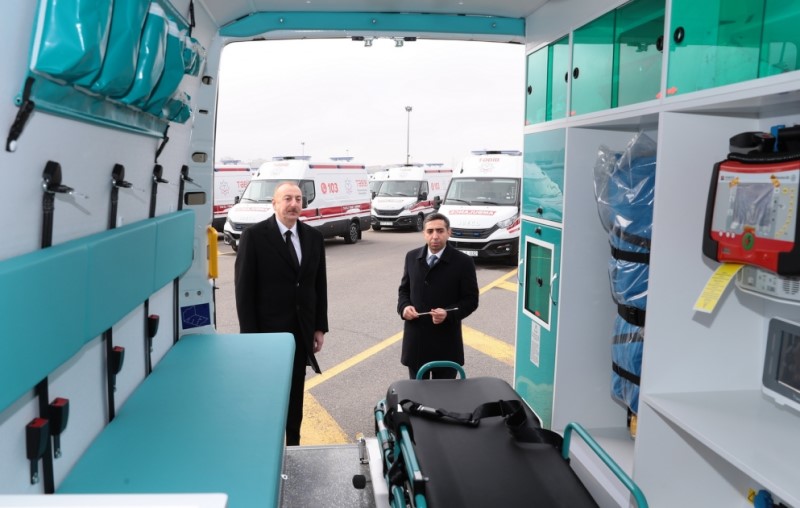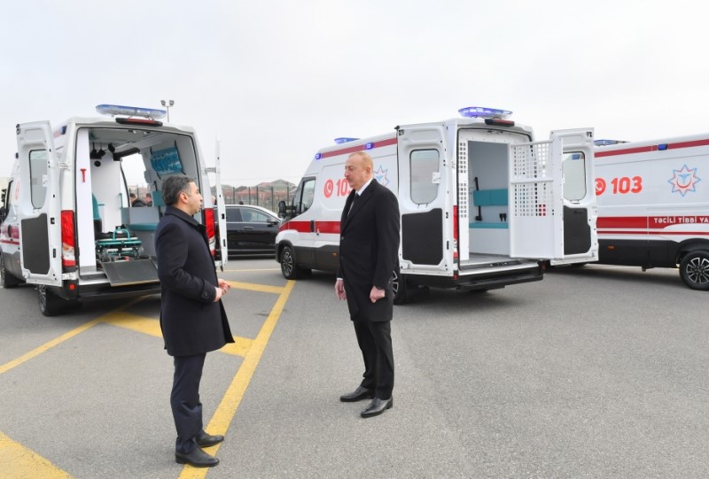 Prezident yeni alınmış təcili tibbi yardım avtomobilləri ilə tanış olub