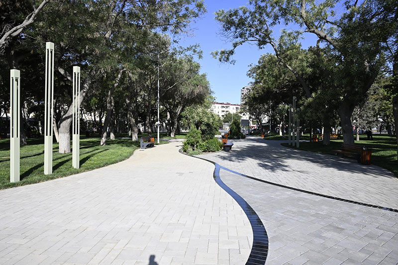 Məlumat verildi ki, şəhərimizin müasir inkişaf səviyyəsinə və memarlıq üslubuna uyğun olmayan park nadir dizaynda yenidən qurulub. Burada müxtəlif istirahət guşələri, əyləncə qurğuları yaradılıb, o cümlədən uzun müddət yararsız vəziyyətdə olan fəvvarə meydanının yenidən qurulması işləri həyata keçirilib.
