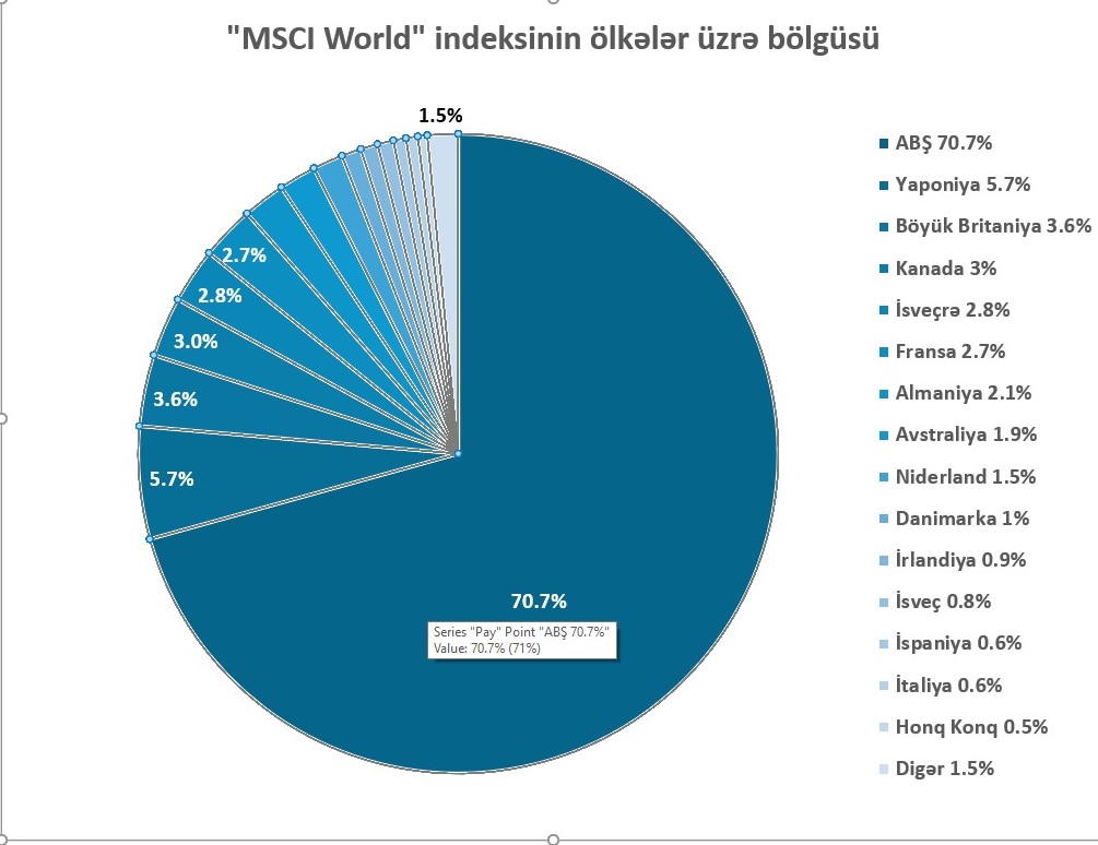 *ARDNF-nin kotirovka olunan səhm investisiyalarının “MSCI World” indeksini izləyən hissəsi. Bundan əlavə 1.5 milyard ABŞ dolları həcmində hissəni “MSCI Europe ex UK” indeksini izləyən portfel və nağd vəsaitlər təşkil edir.