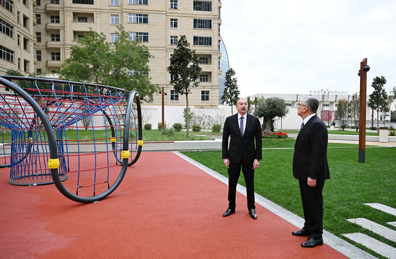 Prezident İlham Əliyev Bakıda yeni salınan parkda yaradılan şəraitlə tanış olub