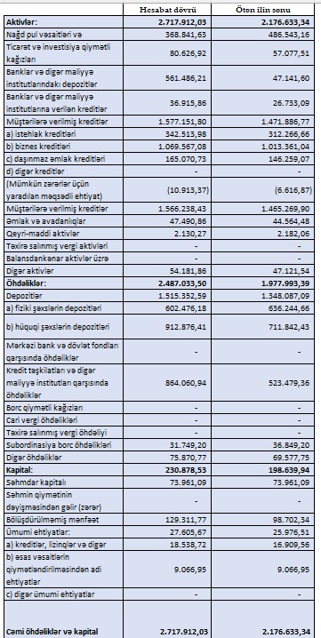 Aktivlərini 2,7 milyard manata çatdırıb, kredit portfeli sürətlə böyüyür - gəlirlərini 23%, mənfəətini isə 10% artırıb