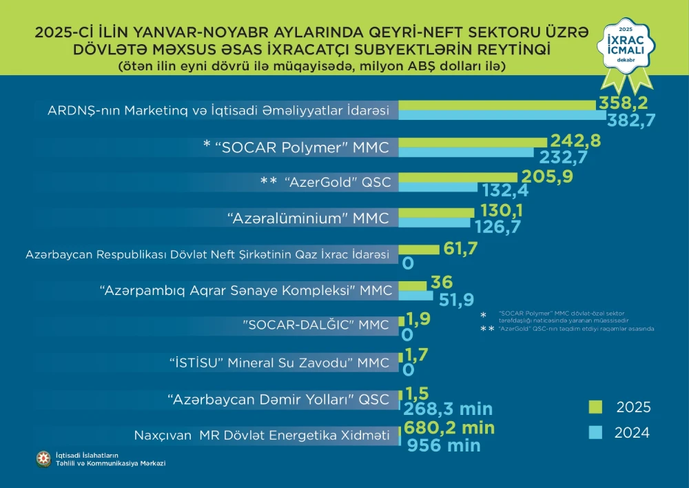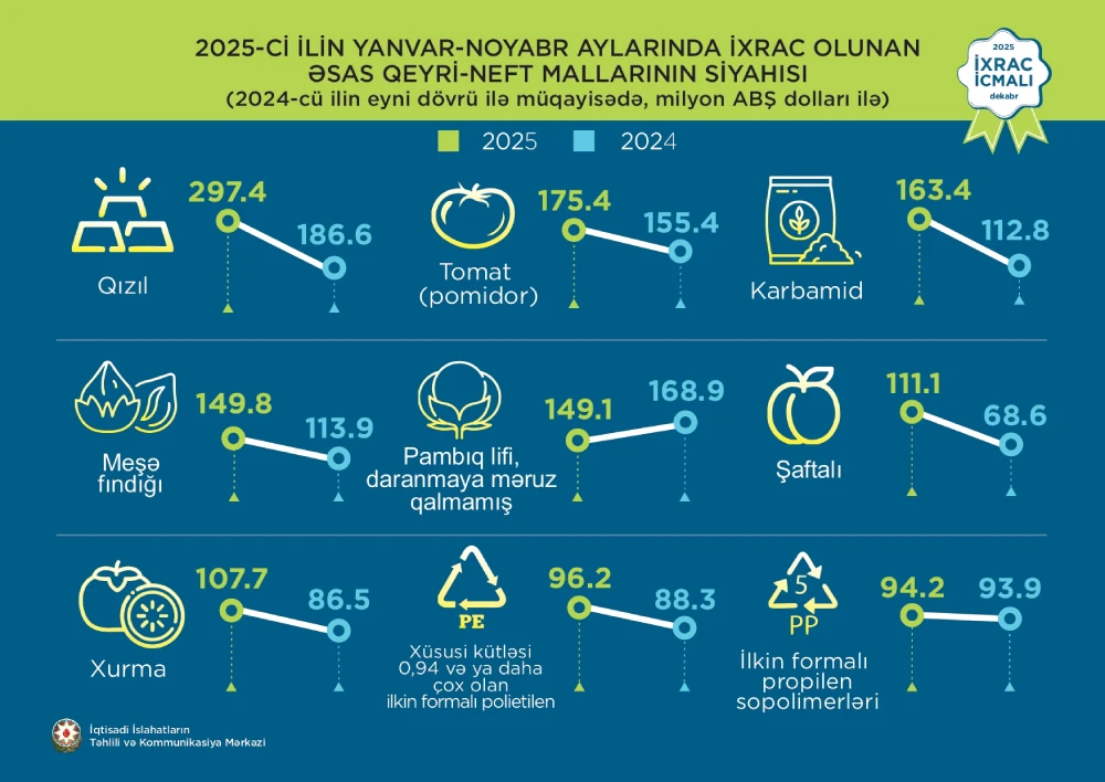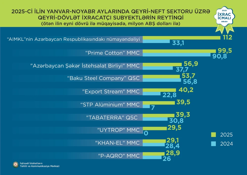 İİTKM ixrac icmalı dekabr ixrac icmalı qeyri-neft ixracı Azərbaycan ixrac statistikası İxrac icmalı 2025 ixrac göstəriciləri qeyri-dövlət ixracatçılar dövlət şirkətləri ixracı Azərbaycanın ixrac reytinqi ixrac icmalı məlumatları ixrac əməliyyatları ixrac xəbərləri Marja.az ixrac xəbərləri AzVak iş elanları iş elanları Azərbaycan ixrac sektoru xəbərləri ixrac və iqtisadi təhlil ixrac icmalı dekabr 2025 Azərbaycan iqtisadiyyatı ixrac qeyri-neft sektorunun ixracı.