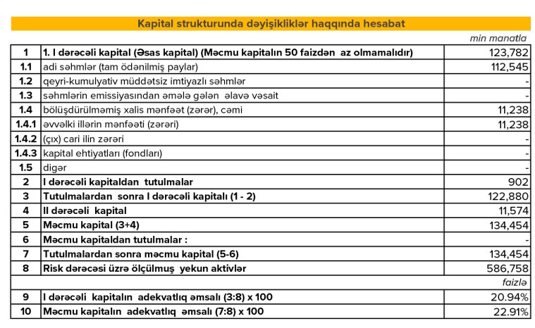 Qeyri-faiz xərcləri isə 53 milyon 136 min manat təşkil edib ki, bu da 4 milyon 284 min manat və ya 8,8 faiz artım deməkdir. İnzibati və əməliyyat xərclərinin yüksəlməsi bu dinamikanı şərtləndirib.