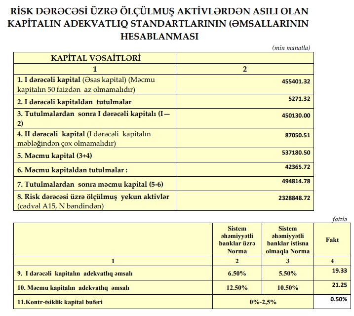 Eyni zamanda, kredit portfeli cüzi azalaraq 1 milyard 887 milyon 236 min manatdan 1 milyard 847 milyon 435 min manata enib. Azalma 39 milyon 801 min manat və ya 2,1 faiz təşkil edib. Kredit portfelinin azalması bankın daha ehtiyatlı kredit siyasəti apardığını və riskləri balanslaşdırmağa çalışdığını göstərir.