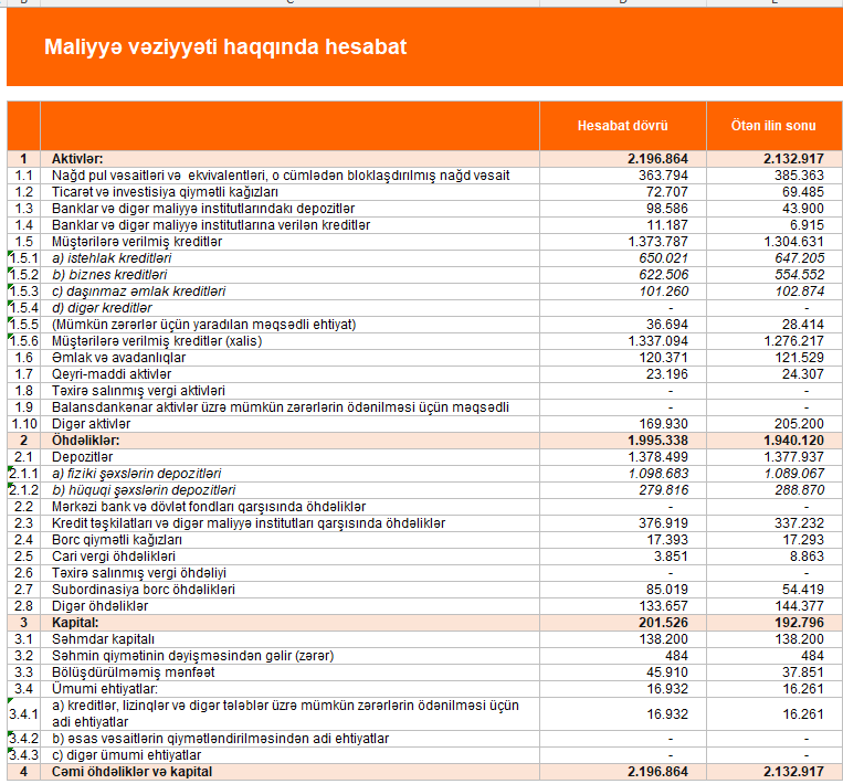 Qeyd edilib ki, Bankın kapital və aktiv bazasında yüksək artım qeydə alınıb. Məcmu kapital 33 % artaraq, 240 milyon manata çatıb. Aktivlərin həcmi isə 393 milyon manat artaraq 2,2 milyard manata yaxınlaşıb.