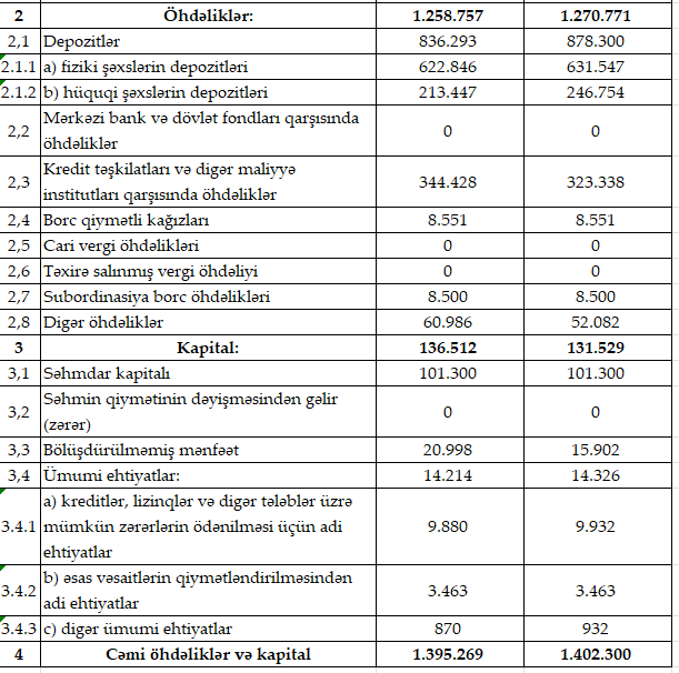 "Rabitəbank"da depozitlər isə 42 milyon 7 min manat və ya 4,8% azalaraq 836 milyon 293 min manata düşüb. İlk rübdə həm fiziki, həm də hüquqi şəxslərin depoitləri azalıb.