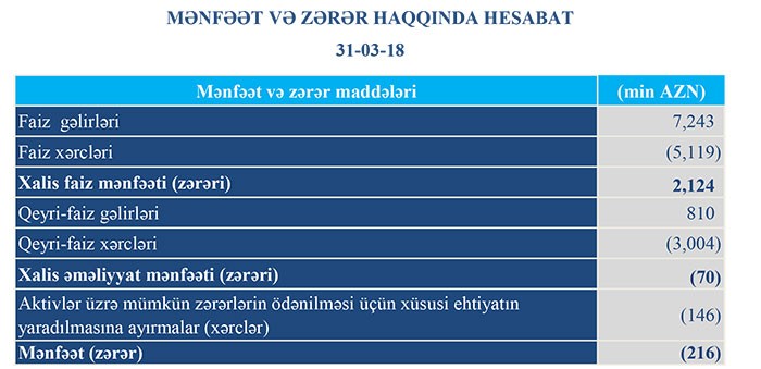 “TuranBank” 2017-ci ilin yanvar-mart aylarında 8 milyon 834 min manat gəliri əldə etmək üçün 9 milyon 201 min manat xərc çəkmişdi. Nəticədə Bankın 368 min manat əməliyyat zərəri yaranmışdı. Üstəlik bank, aktivlər üzrə mümkün zərərlərin ödənilməsi üçün xüsusi ehtiyatın yaradılmasına 831 min manat ayırdığından Bankın zərəri 1 milyon 199 min manata qalxmışdı.