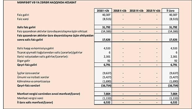 Xərclər çıxıldıqdan sonra Bankın 7 milyon 664 min manat əməliyyat mənfəəti qalıb. Bu mənfəətdən 1 milyon 132 min manat mənfəət vergisi ödənilib.