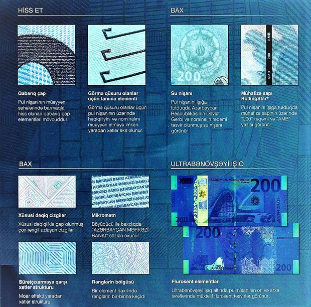 E.Rüstəmov bildirib ki, bu gün Mərkəzi Bank mövzusu müstəqil Azərbaycanın memarı ümummilli liderin xatirəsinə inşa edilmiş “Heydər Əliyev Mərkəzi” olan 200 manatlıq kağız pul nişanını tədavülə tədqim edir. Yeni banknotun üzərində ölkəmizin, paytaxtımızın ən müasir simvollarından biri olan Heydər Əliyev Mərkəzinin əzəmətli təsviri, Mərkəzin əsas eksteryer və interyerinin dizayn elementləri, milli xalça nümunələrinin elemetləri, digər milli ornamentlər əks olunmuşdur.