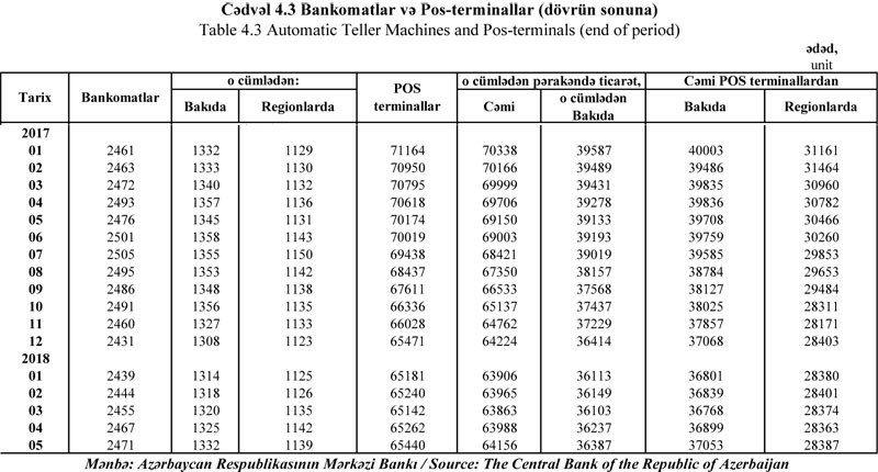 2015-ci ilin sonunda Azərbaycanda bankların POS-terminallarının sayı 80 min 301 ədədə çatmışdı. Bu say ilə müqayisədə hazırda POS-terminalların sayı 14 min 861 ədəd azdır.