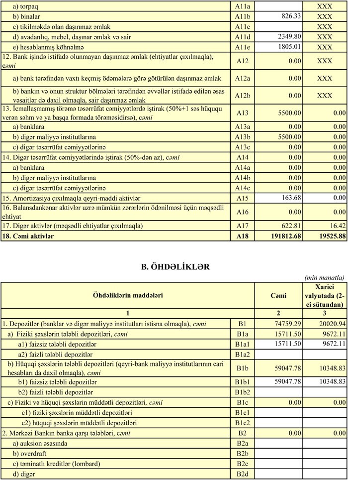 “Naxçıvanbank”ın maliyyə vəziyyəti məlum oldu