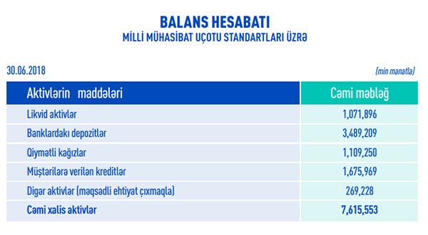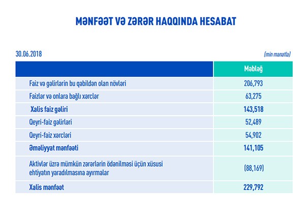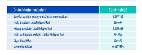 Hesabat dövründə bankda əhalinin əmanətlərinin həcmi 1.26 milyard manat, korporativ müştərilərin vəsaitləri isə 2.63 milyard manat olub.