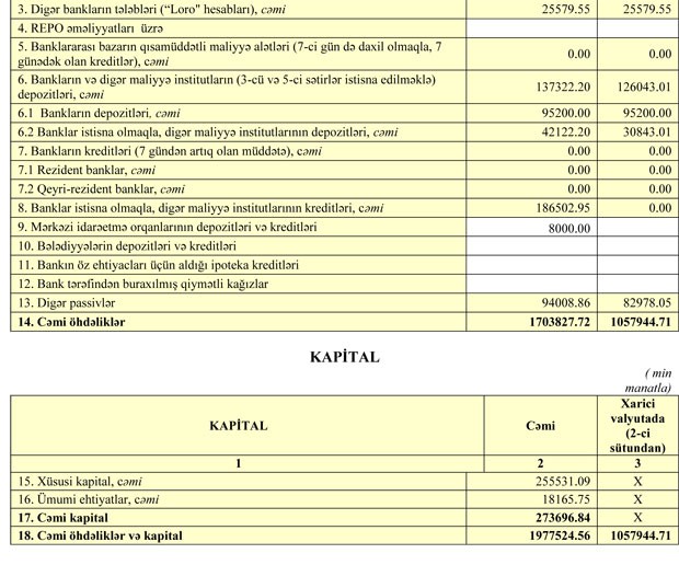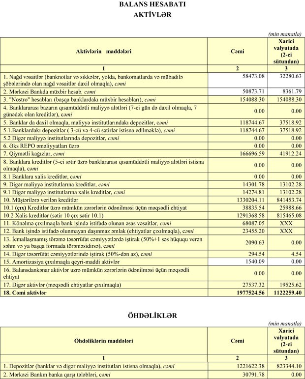 Maliyyə qurumu Azərbaycan Mərkəzi Bankı qarşısında öhdəliyini isə 2,2% azaldaraq 30 milyon 792 min manata endirib.