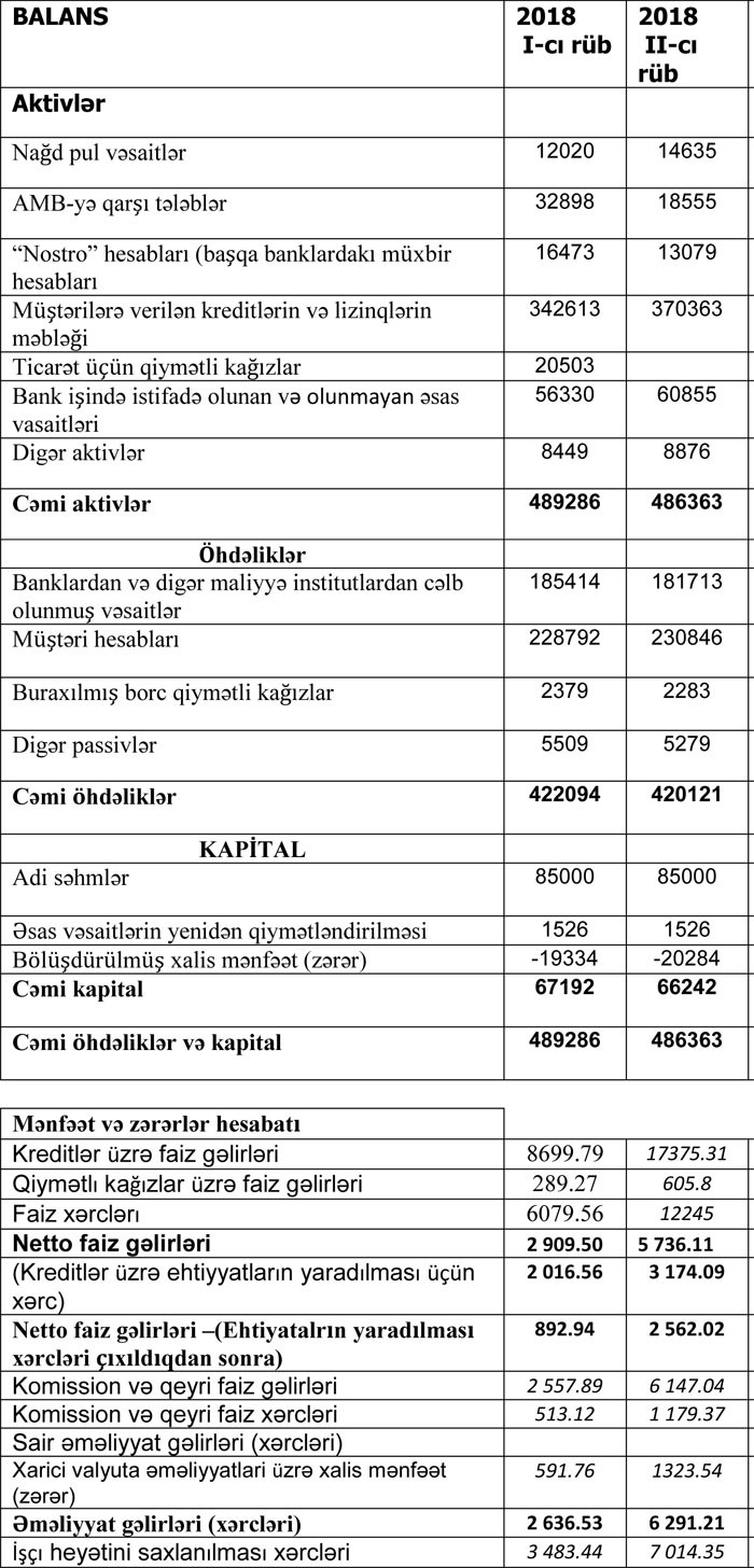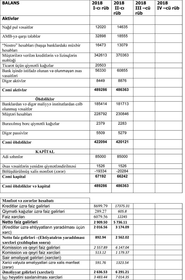 “MuğanBank” ASC 2018-ci ilin birinci yarısı üzrə maliyyə göstəricilərini açıqlayıb.