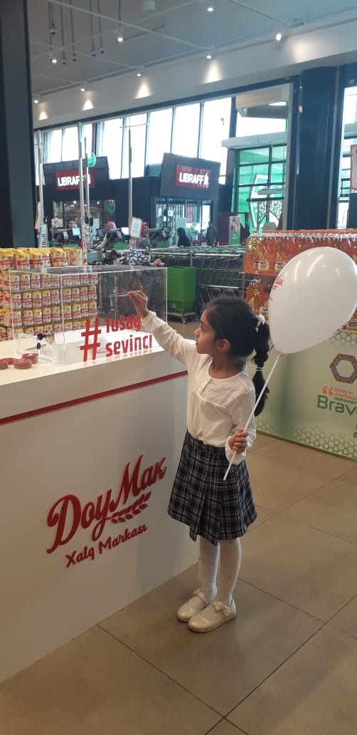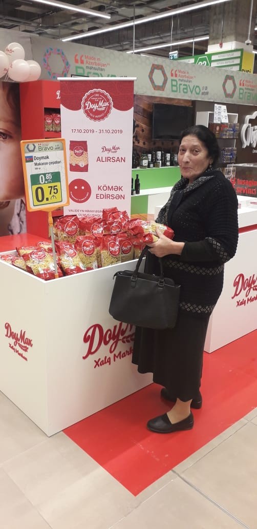 “Bravo” supermarketlər şəbəkəsinin 3 mağazasında - 20 yanvar, Koroğlu metrostansiyaları və "Radiozavod"un yaxınlığında xüsusi "Doymak" stendləri quraşdırılıb. Onlardan məhsul almaqla hər bir alıcı çətin şəraitdə yaşayan körpələrə yardım etmiş olur.