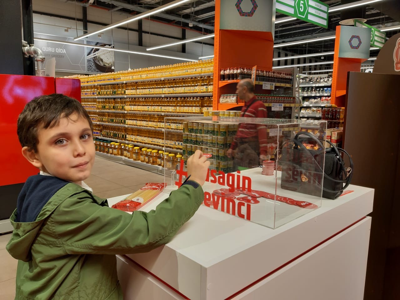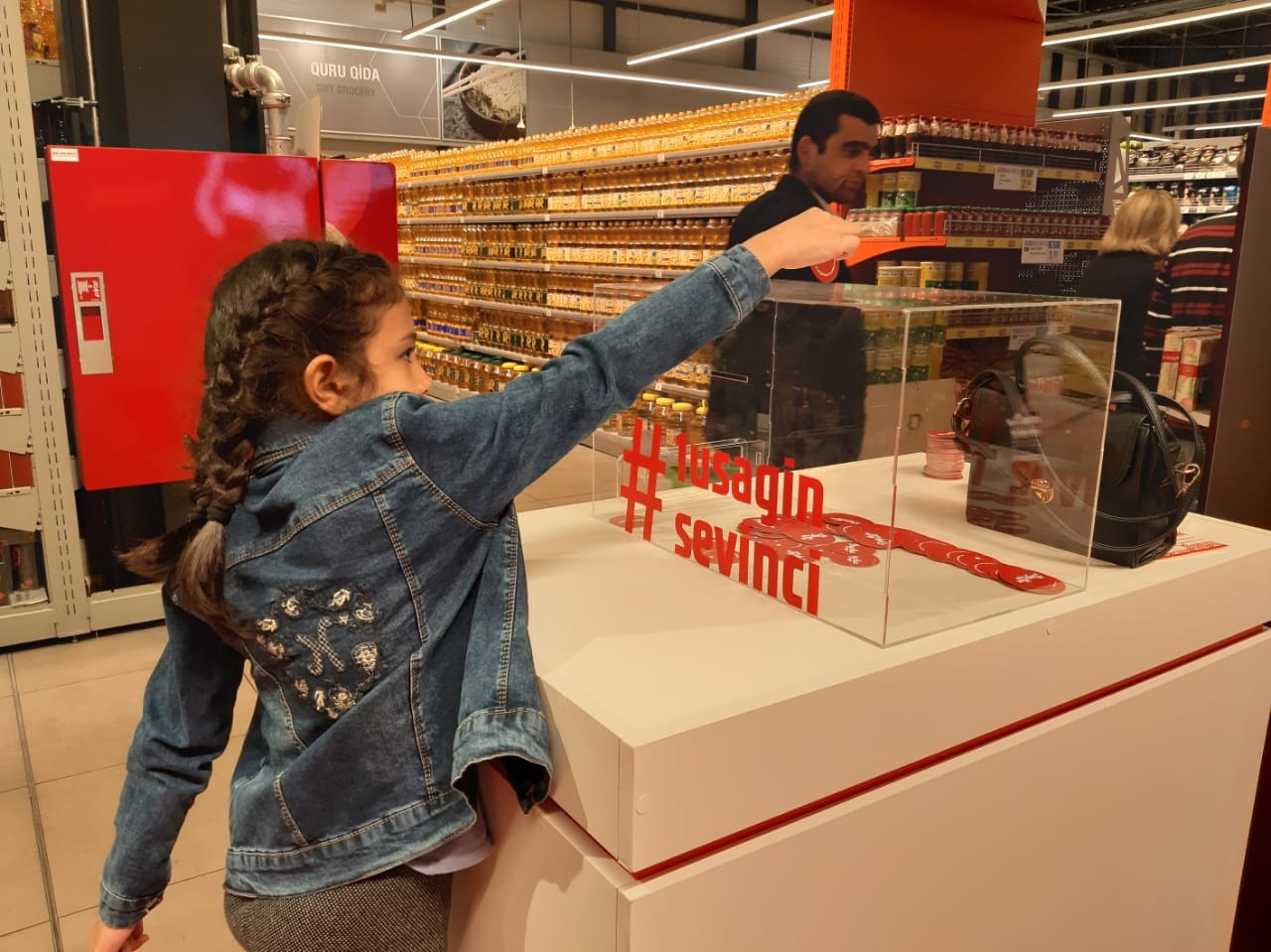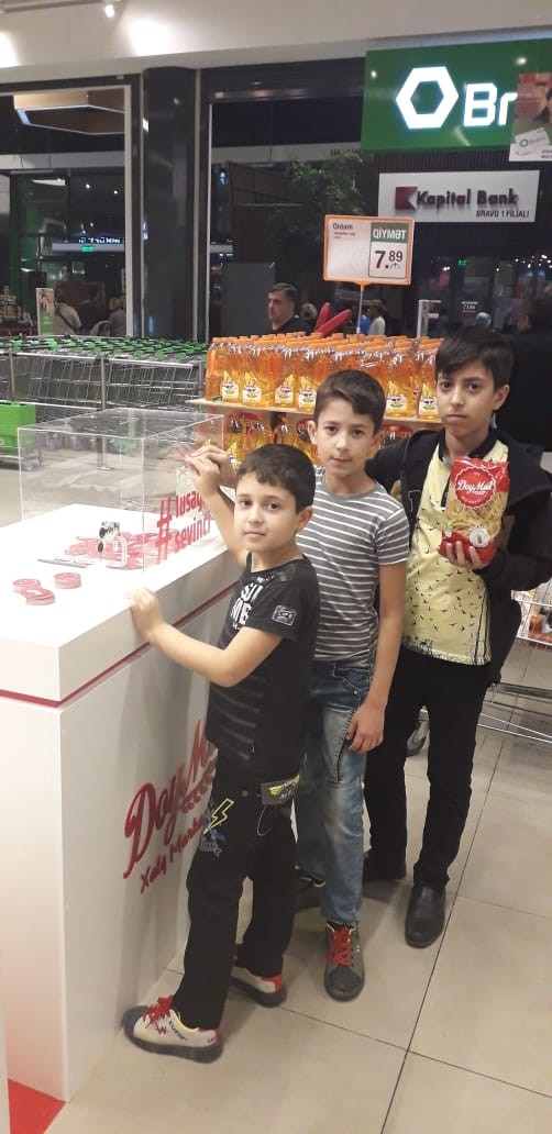 Hər alışdan 0,10 AZN xeyriyyə üçün köçürüləcək. Sosial dəstəyə ehtitacı olan uşaqlara alıcıların yardım simvolu olan “Doymak” jeton-qəpikləri şəxsən özləri tərəfindən atmaq üçün stendlərin üstündə xüsusi şəffaf qutular quraşdırılıb.