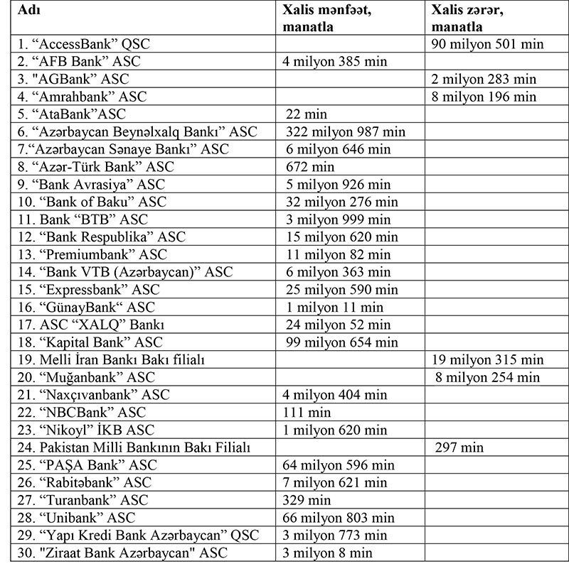 Qazanan və zərər edən banklar məlum oldu - SİYAHI, YENİLƏNİB