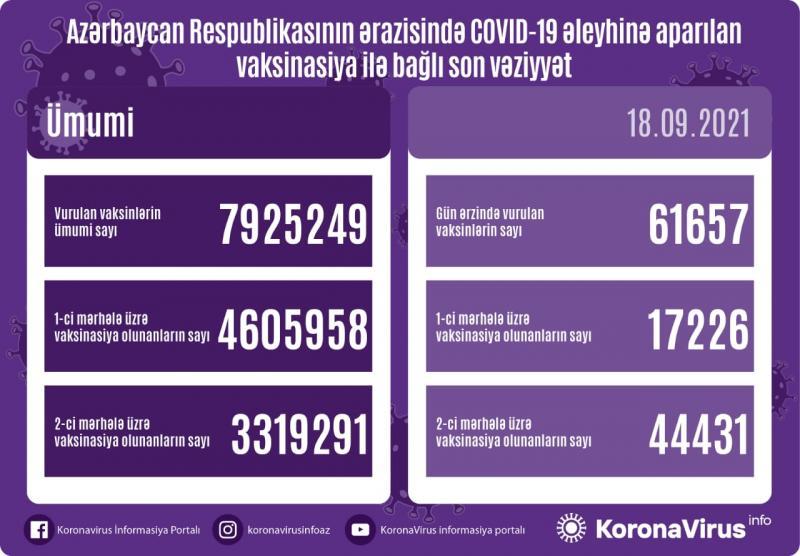 Azərbaycanda bu gün 61 657 nəfər vaksinasiya olunub.